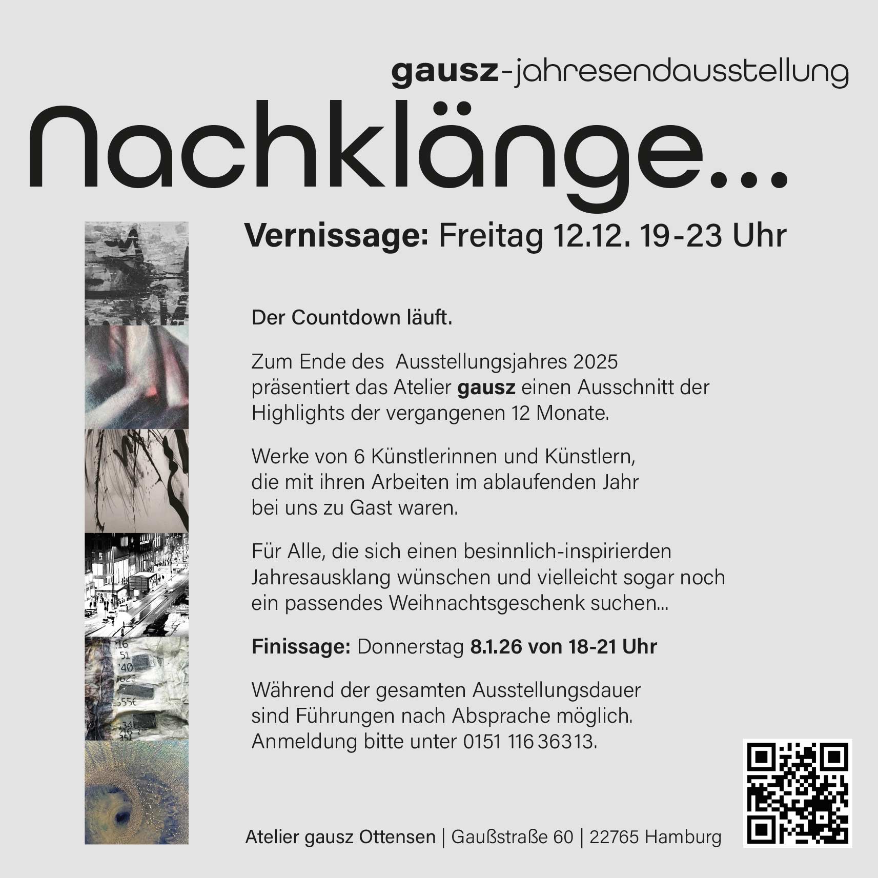 Wer an anderen Terminen Arbeiten in meinem Atelier sehen möchte, kann mich gerne anrufen und dafür persönliche Termine abmachen: 01788 755 251.